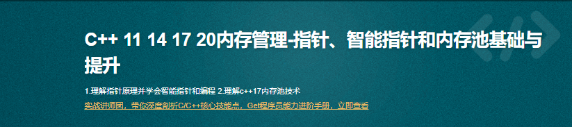 1.c++学习指针有困难的同学 2.工作中用到智能指针和内存池技术,或者做技术储备 3.学习c++11 14 17 20的内存新特性