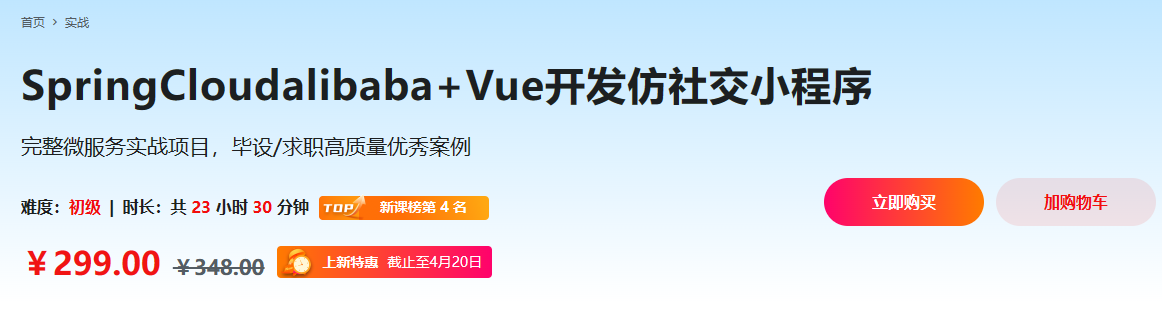 拥有好的项目经验,可以大大提高你的面试通过率。课程是一门高质量、完整、实用性强的可商用项目,基于Spring Cloud alibaba和微信小程序来完成同城交友小程序,系统ui设计、数据库多应用方案、通用中间件使用、构建oauth2认证授权等多使用技术,课程不仅能掌握技术层面,还具备更好的业务水平,也能顺利地通过面试关。