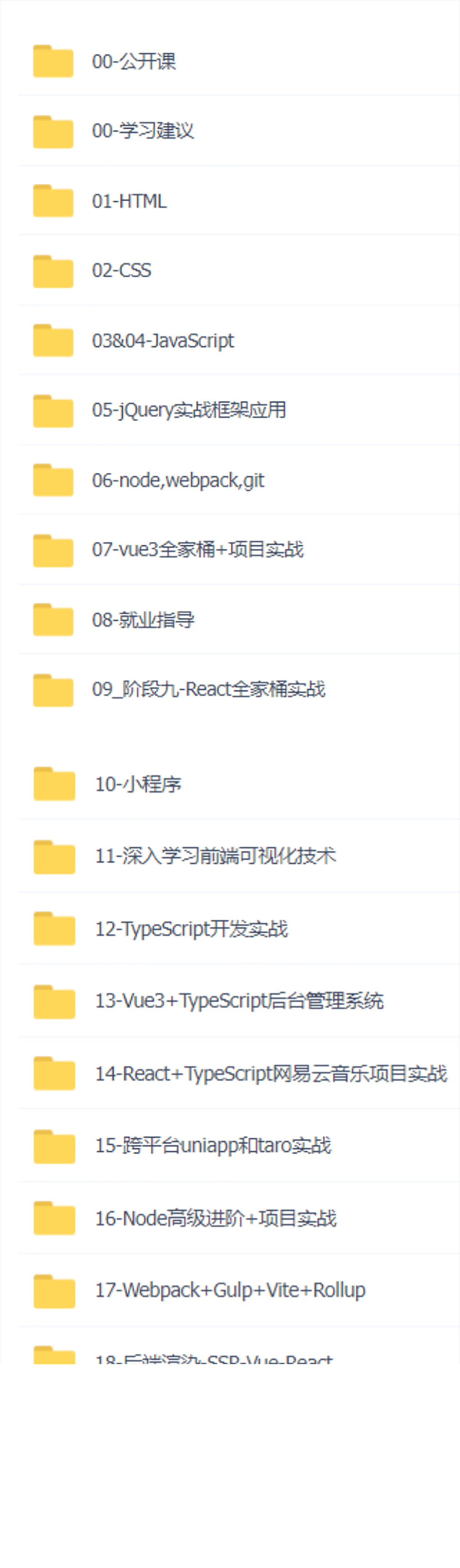 | ├──3、课程体系总览-学习建议_03_(理解)前端课程大纲和薪资标准.mp4 138.57M