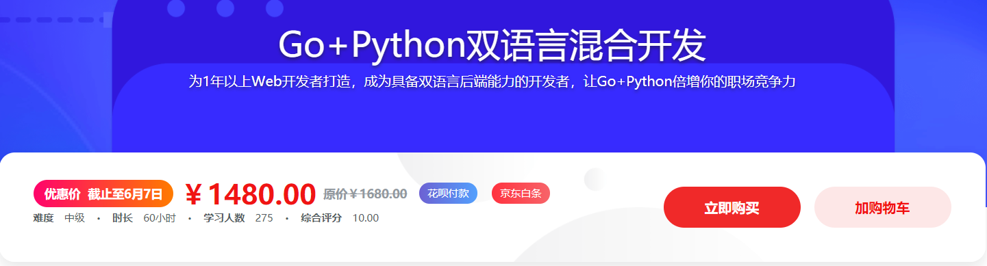 【微体系课】Go+Python打造电商系统 自研微服务框架,本套课程来自木客网官网售价1480元。课程由bobby老师为1年以上Web开发者打造,是一门Go+Python混合开发微服务框架项目实战课程,通过本课程学习,让你具备双语言开发、双语言混合开发能力,课程目录在底部。