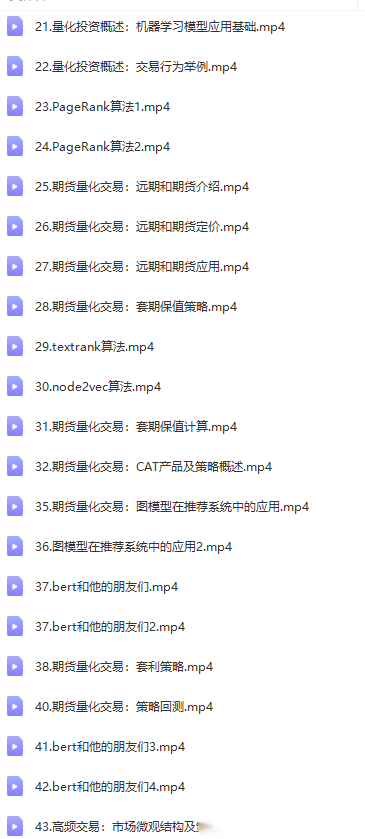 | ├──35.期货量化交易:图模型在推荐系统中的应用.mp4 355.05M