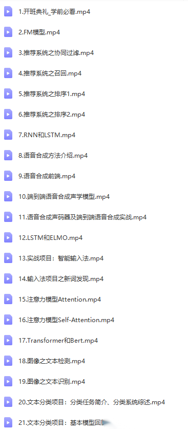 | ├──20.文本分类项目:分类任务简介、分类系统综述.mp4 461.07M