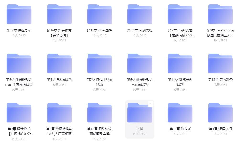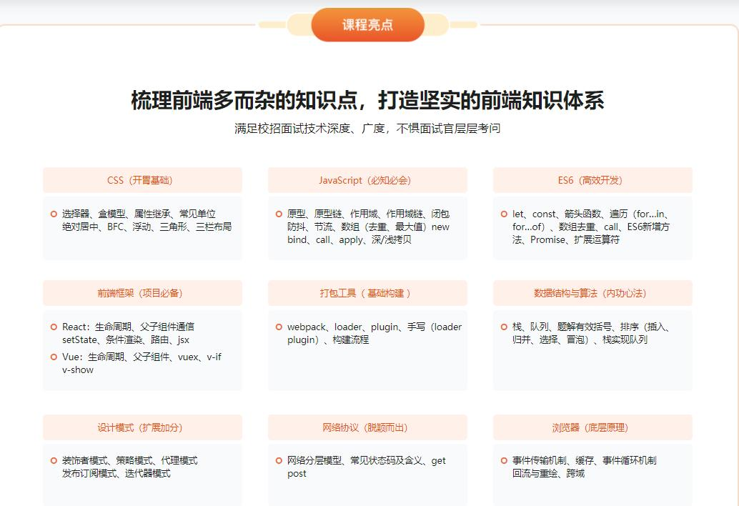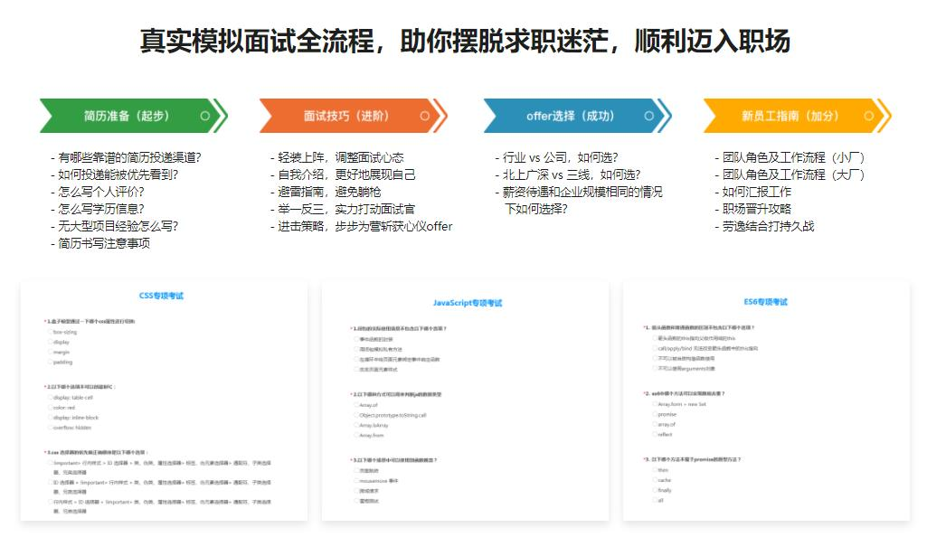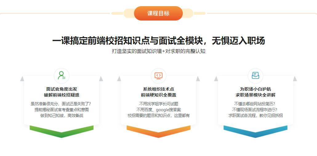 前端就业前景好,非常适合应届生选择;然而大部分高校没有专门开设前端专业,导致大量应届生与前端失之交臂。本课程专门邀请大厂前端面试官,帮助大家快速掌握前端必考知识,并通过模拟面试全流程,提升面试认知与技能,助力快速获得心仪offer,进入前端职场。