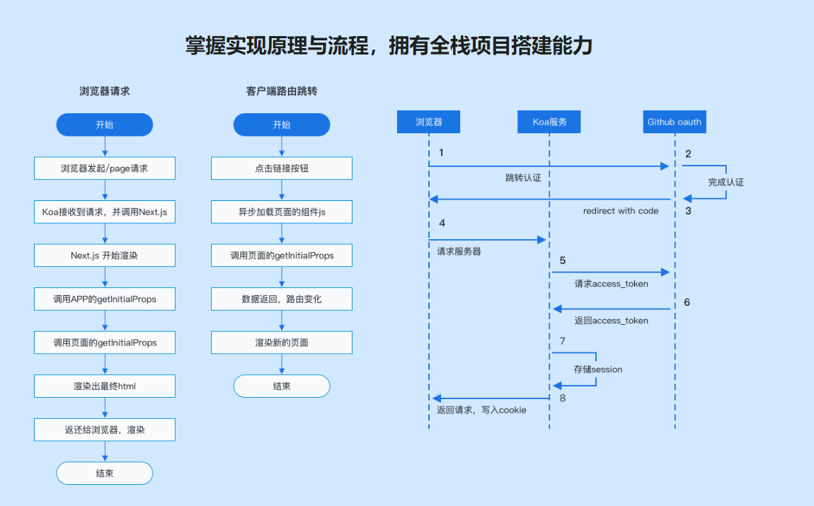本课程使用Next.js、Koa、Redis、Github API等搭建了一个全栈项目——第三方Github客户端。通过课程学习让同学们理解Next.js搭建全栈同构项目的过程以及其SSR原理,深度理解业界广泛使用的OAuth登录体系,并且能够在工作项目中熟练运用,提升个人竞争力。