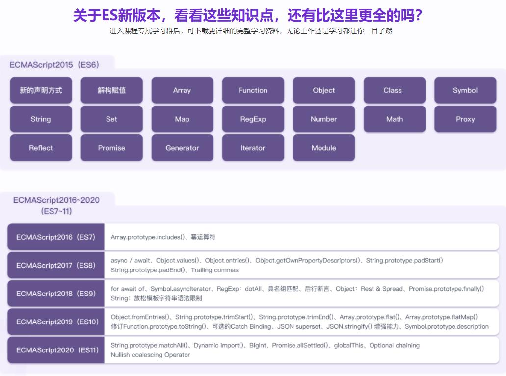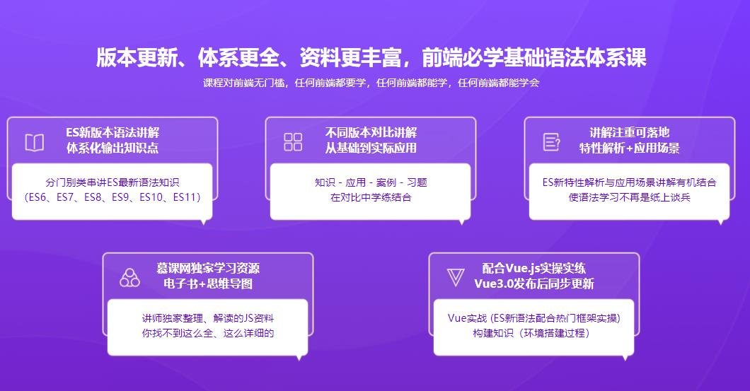 应对更复杂的场景,提升自己的技术实力,优化臃肿的代码,都需要对打牢语法基础。本课涉及JavaScript ES6到10的语法教学,内容全面丰富,熟练掌握语法,很多依赖第三方库才能做到的事用原生JS寥寥几行代码就可迎刃而解。