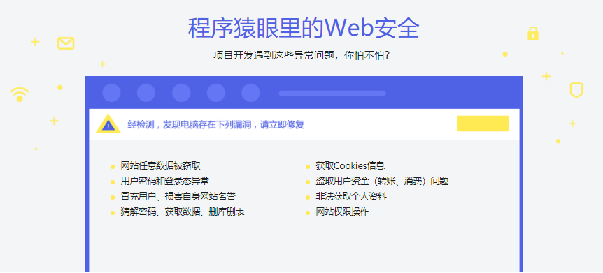 项目终于上线了,却面临安全威胁,你怕不怕?本课程以一个实战项目演示XSS、CSRF、点击劫持、SQL注入等主要安全问题和防御措施,打消你对项目安全的担忧,为自己开发的项目撑起一把保护伞。