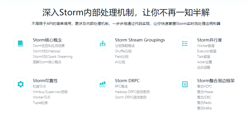 Storm是实时流处理领域的一柄利器,本课程采用最新的Storm版本1.1.0,从0开始由浅入深系统讲解,深入Storm内部机制,掌握Storm整合周边大数据框架的使用,从容应对大数据实时流处理!