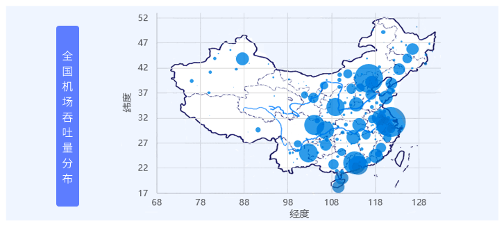 用气泡图展示全国机场吞吐量数据