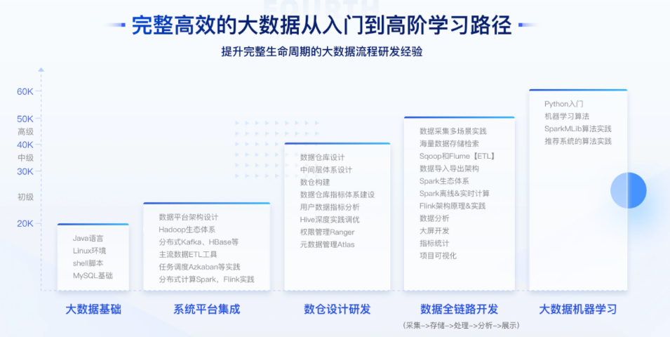 本课程理论实践深度融合,项目驱动,使用前沿技术栈从0构建起大数据完整生态体系,包含完整高效的大数据从入门到高阶学习路径, 让你快速提升完整生命周期的大数据流程研发经验。