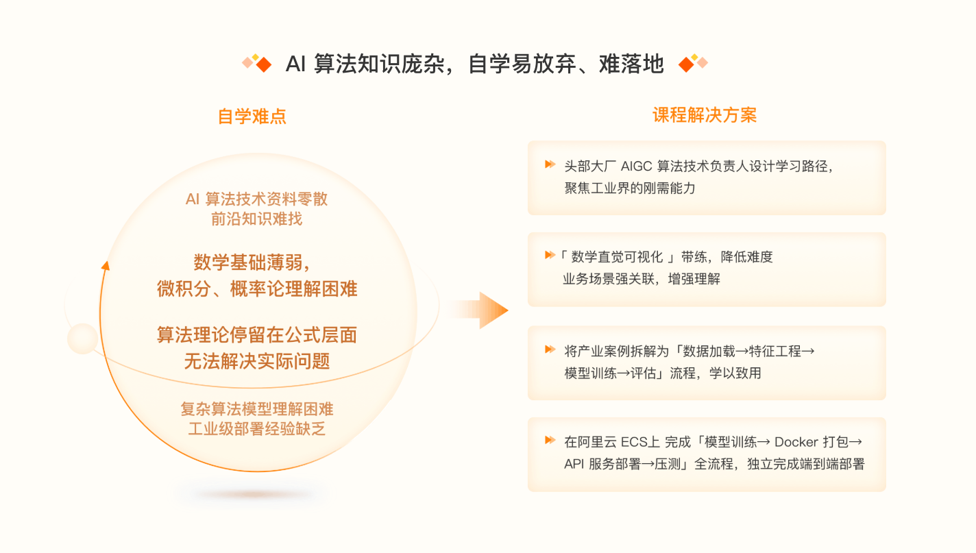● 贴合企业开发环境:使用阿里云 ECS/Notebook、TensorFlow/PyTorch、Kuberflow 等工具链
