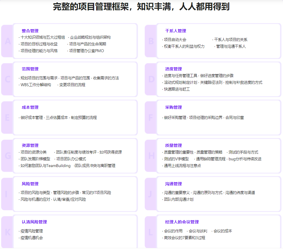 任何项目都会有有一定的风险,如何做好项目风险的把控是每位PM必须要掌握的技能。本章详细学习把控风险的方法与技巧。