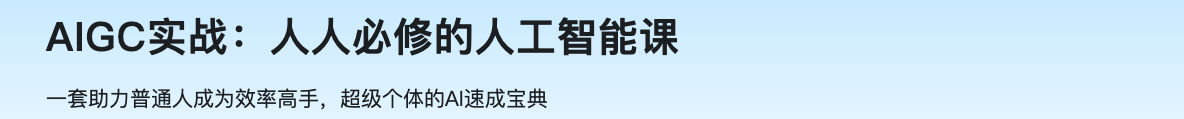 AIGC实战 -人人必修的人工智能课视频教程。本课程专为普通人设计,旨在通过多个场景和案例,手把手教你如何利用GPT技术,全面提升学习、工作、生活和娱乐的效率。我们将帮助你以低门槛、低成本的方式享受AI科技带来的红利,让你成为效率高手和超级个体,从而拥有更多时间去追求自己真正想做的事情。